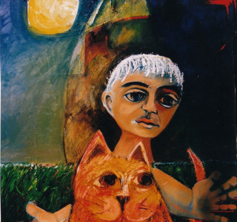 “You see Jay, even though it looks dark and the sky is full of rainclouds. Behind the clouds the sky is blue and the sun is still shining. It’s always a good idea to remember”, he said, “that no matter how dark things look like on the outside, the sun inside you, never stops shining.”Jay jumped up and ran towards the shed. A few minutes later she reappeared. She had put on her yellow wellington boots and was carrying a bright red umbrella. She stomped in the puddles, splashing and laughing as she walked towards her cat.